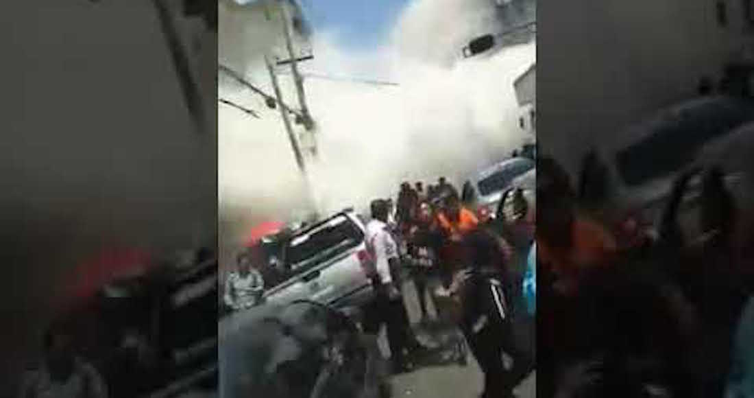Las personas que se encontraban cerca del edificio comienzan a gritar, mientras el ciudadano que grababa logra salir.
