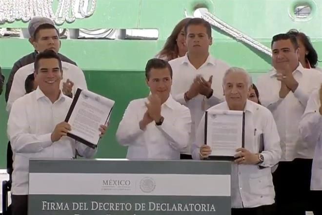 El Presidente firmó la declaratoria de las ZEE de Campeche y Tabasco. Foto: Tomada de Twitter |