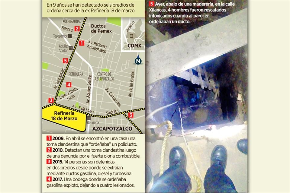 Desde hace una década han sido descubiertas tomas clandestinas en colonias aledañas a la antigua refinería de Azcapotzalco, clausurada en 1991 justamente por razones de seguridad luego de la explosión de una gasera seis años antes en San Juan Ixhuatepec, Estado de México.