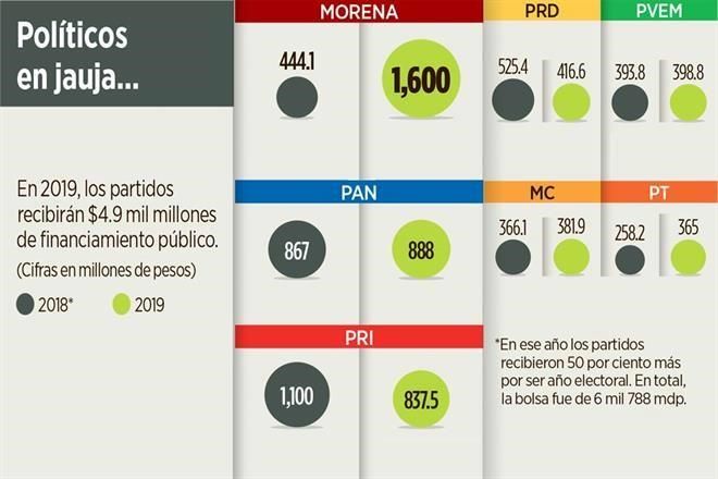 Mientras que Morena se servirá con la cuchara grande en 2019, el PAN tendrá cerca de 888 millones de pesos, cifra casi idéntica a los 867 millones que, sin contar el financiamiento de campaña, obtuvo en 2018.