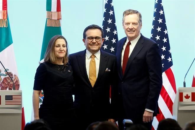 | La ministra de Relaciones Exteriores de Canadá, Chrystia Freeland; el Secretario de Economía mexicano, Ildefonso Guajardo, y el representante comercial de Estados Unidos, Robert Lighthizer. Foto: Reuters |