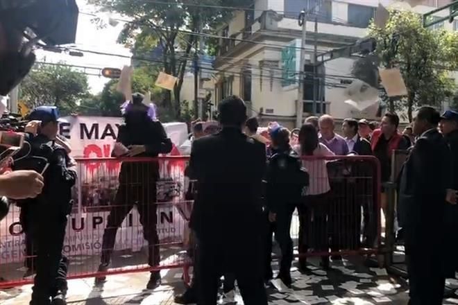 | Manifestantes lanzaron volantes afuera de la casona ubicada en la Colonia Roma. Foto: Héctor Gutiérrez |