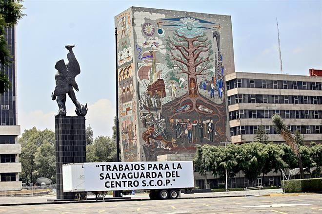 Se trabajará también, anticipa el ingeniero, en un velado de protección para los paneles que integran este patrimonio. A diferencia de los murales pintados en paredes, en el caso del complejo de la SCT o Centro SCOP, como también se le conoce, los artistas optaron por colocar en paneles o módulos sujetos a un muro, piedras de color natural y material vidriado que resistieran la intemperie, según refirió el subdirector de Patrimonio Artístico del INBA, Xavier Guzmán Urbiola, en octubre pasado.