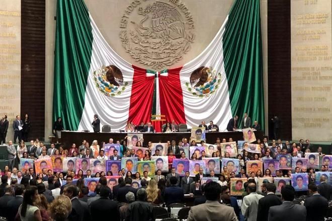 Desde la tribuna de la Cámara de Diputados se realizó el pase de lista de los 43 estudiantes de la Normal de Ayotzinapa, a casi cuatro años de su desaparición en Iguala, Guerrero.