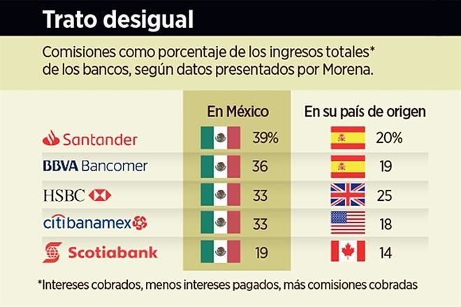 La iniciativa argumenta que el cobro de comisiones de los bancos en México representan una tercera parte de los ingresos de las instituciones crediticias, una proporción superior a la registrada en sus casas matrices, en sus países de origen.