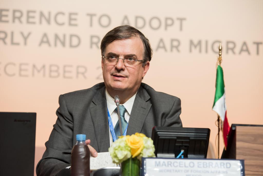El canciller mexicano destacó que estas son dos visiones que se contraponen, pero que obligan a materializar este pacto para que pase de ser una mera declaración a acciones y políticas efectivas que demuestren que la visión de regular la migración desde una perspectiva de los derechos humanos puede ser exitosa.