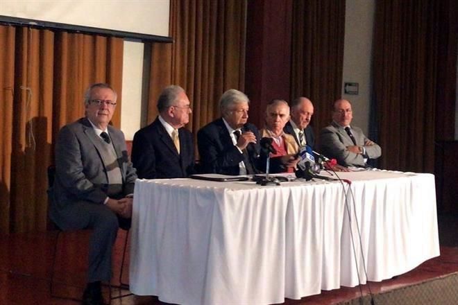 El dictamen estuvo a cargo de los próximos secretarios de Comunicaciones y Transportes, Javier Jiménez Espriú, y de Hacienda, Carlos Urzúa Macías; asimismo, Alfonso Romo, quien será jefe de la Oficina de la Presidencia, y los asesores del gobierno electo José María Riobóo y Sergio Samaniego.