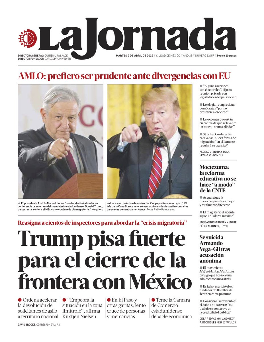 El presidente municipal llamó a las autoridades federales a blindar los puentes internacionales y no esperar hasta que llegue "una caravana tratando de violentar la tranquilidad, la paz y el desarrollo en Nuevo Laredo, afectando a tantísima gente que diariamente cruza a Estados Unidos". “Que sea mala broma” “Esperemos que la amenaza no sea más que una mala broma”, expresó ayer el economista Dan Grisworld, del Mercatus Center, de la Universidad George Mason, de Virginia. Señaló que la amenaza de Trump sería “totalmente descabellada” y resaltó que cada día cruzan la frontera un promedio de 15 mil camiones y mil 600 millones de dólares en productos. “Si se interrumpe el comercio, los productores estadunidenses sufrirán agobiantes interrupciones en sus cadenas de abastecimiento, las familias verán un aumento en los precios de alimentos y vehículos, y los exportadores no contarán con su tercer mercado más grande”, destacó.