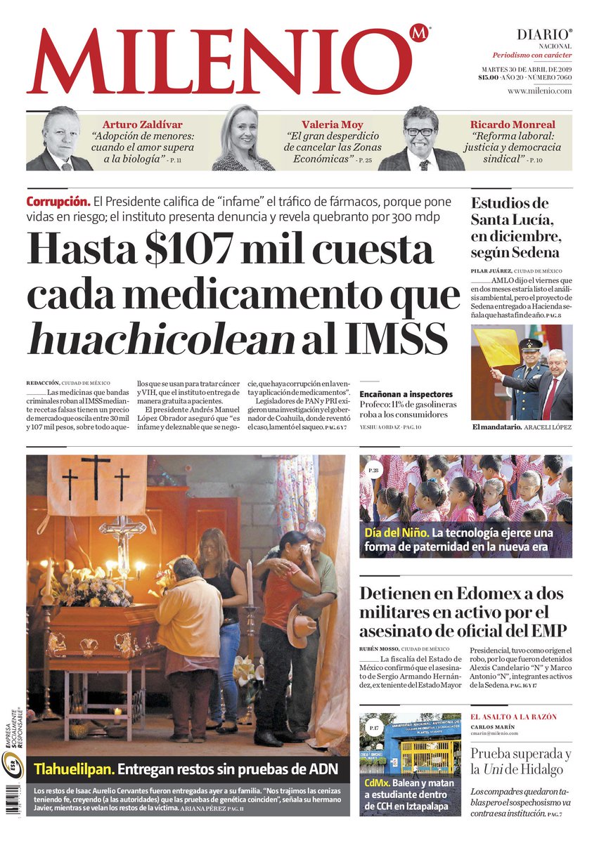 El funcionario federal hizo un llamado a todos los trabajadores del instituto a colaborar con esta investigación para dar con los responsables, garantizando el anonimato de quien haga alguna denuncia al respecto. Informó que la investigación se lleva a cabo a escala nacional con el objetivo de cerrar espacios a la corrupción y ofrecer mejores condiciones de servicio para los derechohabientes. “La denuncia se presentó contra quien resulte responsable luego de que se registraron diversas irregularidades en la entrega y control de las recetas con las que presuntamente se surtían los medicamentos.