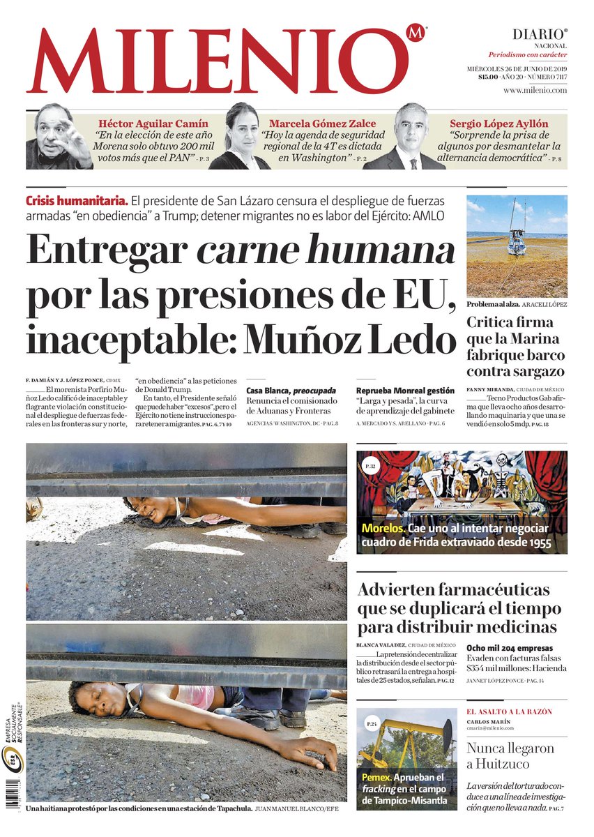 El presidente de la Cámara de Diputados, Porfirio Muñoz Ledo, calificó de inaceptable y flagrante violación constitucional el despliegue de fuerzas federales en las fronteras norte y sur para contener el flujo migratorio hacia Estados Unidos, “en obediencia” a las peticiones de Donald Trump. “Lo que está ocurriendo en el país es inaceptable, porque no se puede entregar la carne humana por la presión de la gran potencia, ¡eso no!”, puntualizó. En entrevista con MILENIO, el legislador de Morena dejó claro que no quitará el dedo del renglón ni se quedará callado: “Político se escribe hoy con pe de patriota”.
