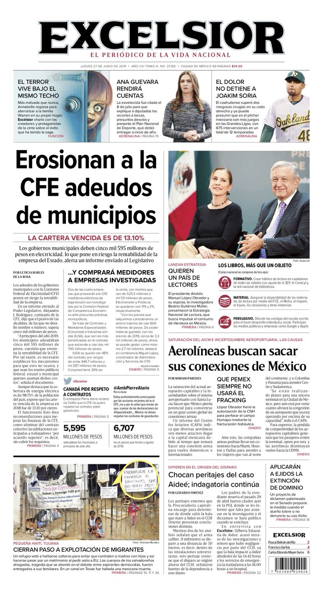 Los gobiernos municipales deben cinco mil 595 millones de pesos a la Comisión Federal de Electricidad (CFE), informó al Poder Legislativo el comisario de la CFE, Alejandro J. Rodríguez, quien detalló que la cobertura de energía eléctrica llegó a 98.75% de la población del país y que la empresa productiva del Estado registró en 2018 una cartera vencida de 13.10 por ciento.