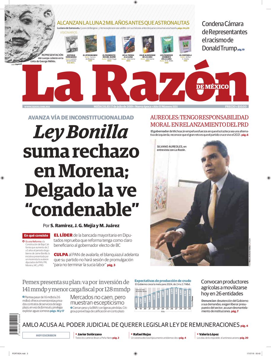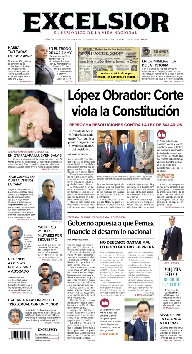 “Se están tomando decisiones, yo creo que los legisladores van a tener que revisar este asunto, pero hay que respetar la Constitución y hay que bajar los sueldos de los de arriba para aumentar los sueldos de los de abajo”, expresó el mandatario, flanqueado por Delgado y Monreal.
