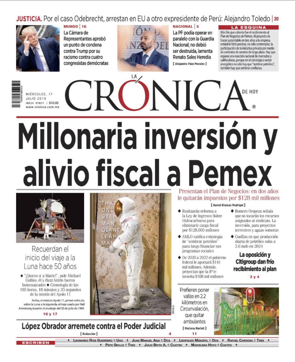Sobre el rescate a la industria, resumió: “Se trata de seguir apoyando a Pemex en los primeros tres años de gobierno con presupuesto y reducción de impuestos y que en los últimos tres años, ya con más producción, contribuya al desarrollo de México”.